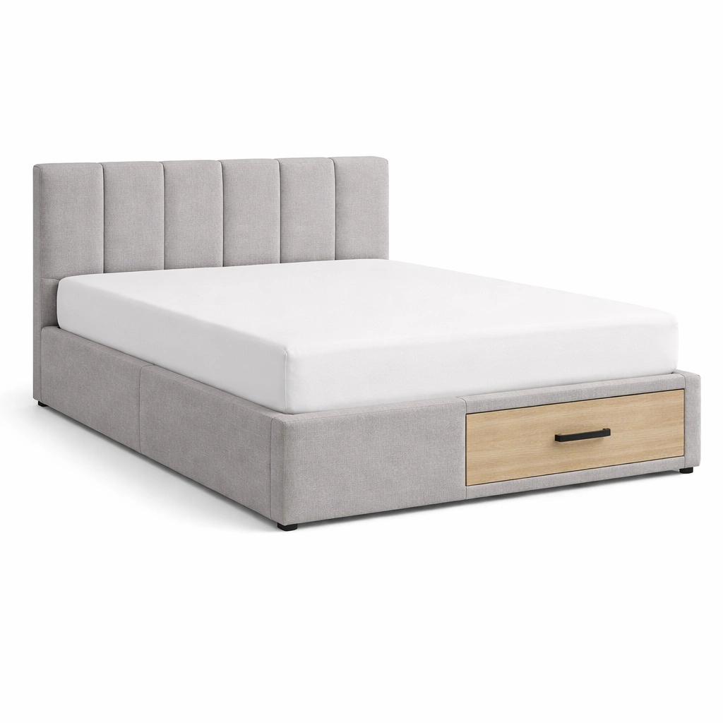 Cama con almacenamiento de matrimonio de madera con cajones gris