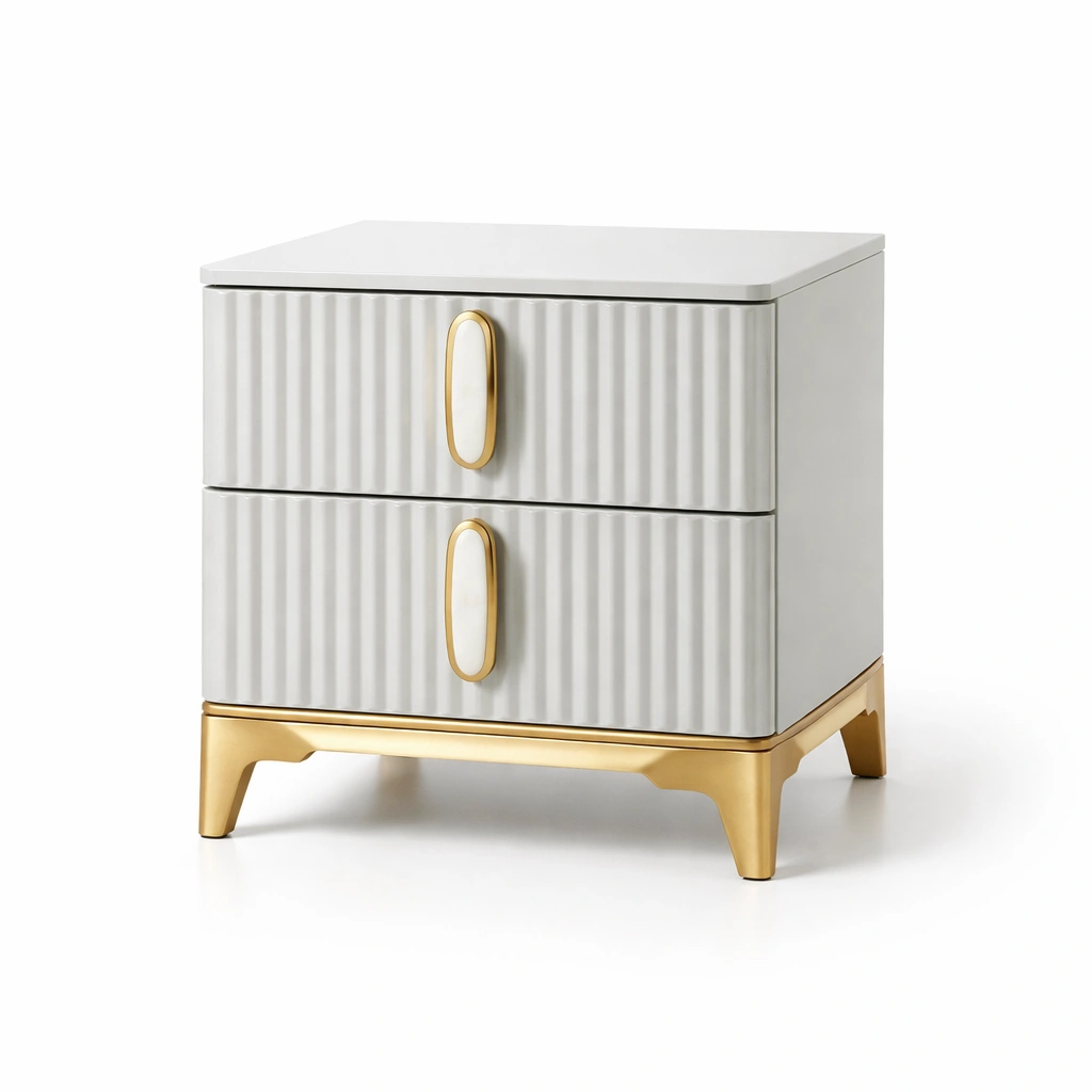 Mesita de noche de MDF y acero blanco y dorado 50x40x55 cm